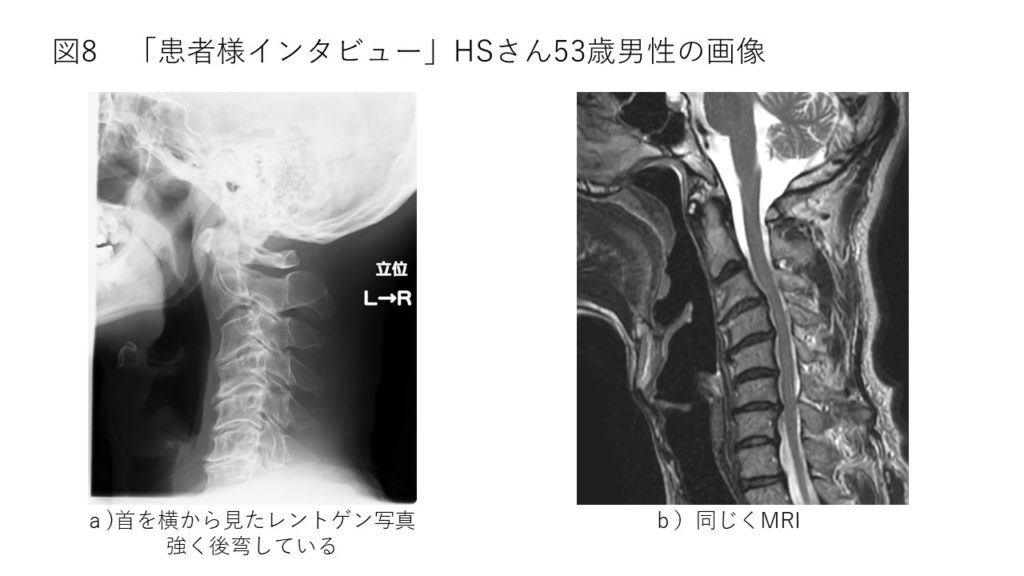 また、これから初めて首の手術を受けようとする患者さんだけでなく、図3,4,5、6でお見せした画像写真のように、他の施設で頚椎椎弓形成術あるいは頚椎脊柱管拡大術を受けて後弯が悪化したために私のクリニックに相談にいらっしゃる患者さんも少なくありません。